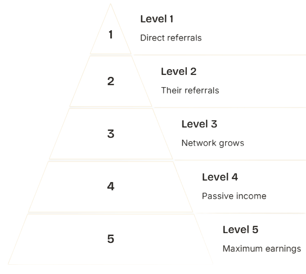 Imagine referring just 5 people, who each refer 5 more—by Level 5, your network could include thousands of users, all contributing to your passive income stream.